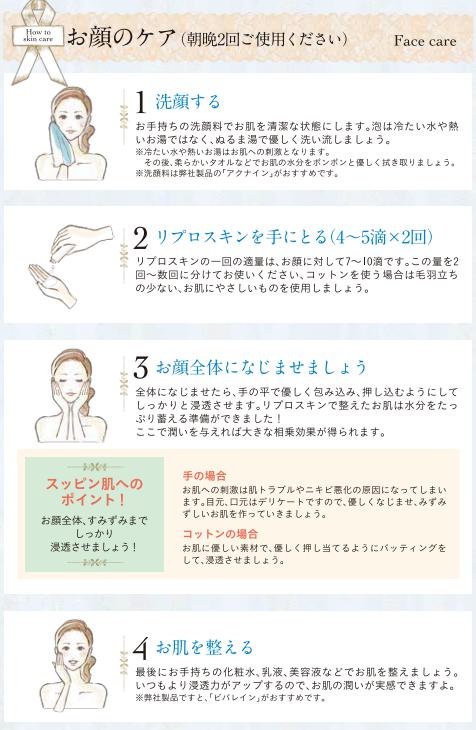 リプロスキンの使い方の説明書には、1日朝晩2回、洗顔した後に、一番最初にリプロスキンを使うように書かれています。